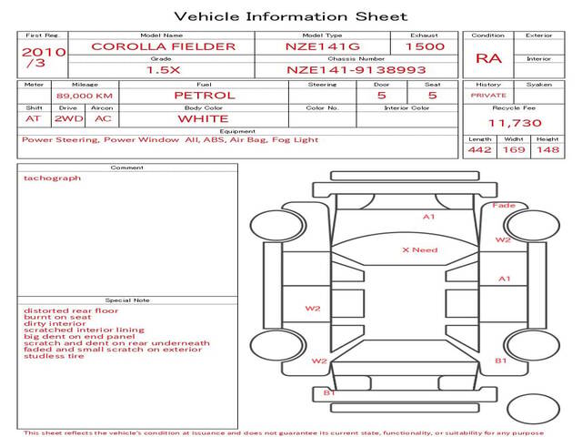 2010 TOYOTA COROLLA FIELDER 1.5X