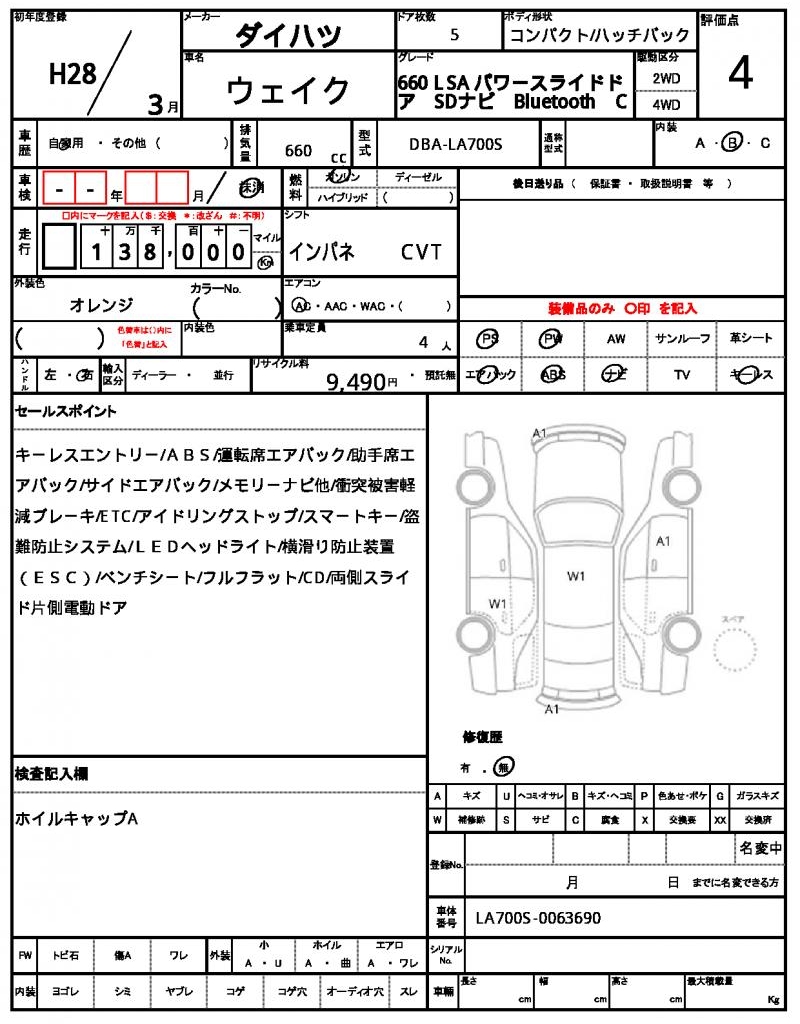 2016 DAIHATSU WAKE