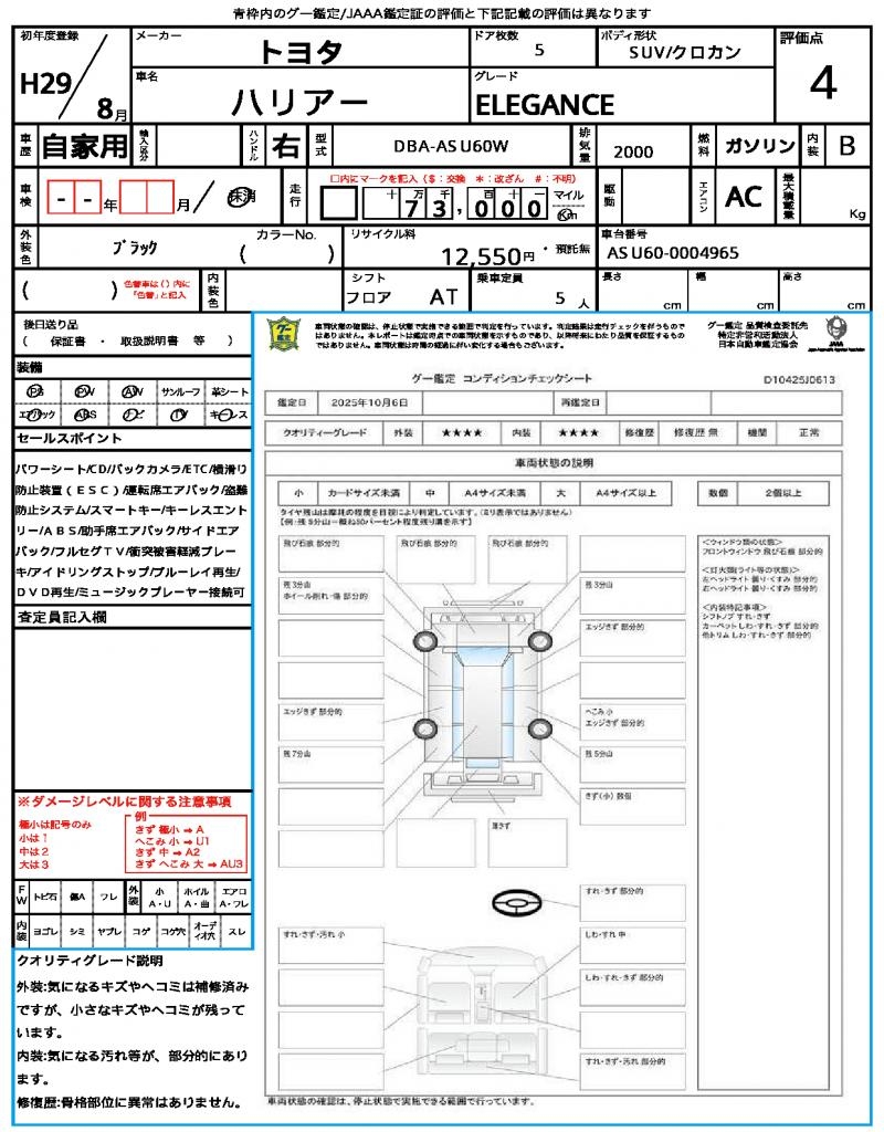 2017 TOYOTA HARRIER ( LEXUS RX300) ELEGANCE