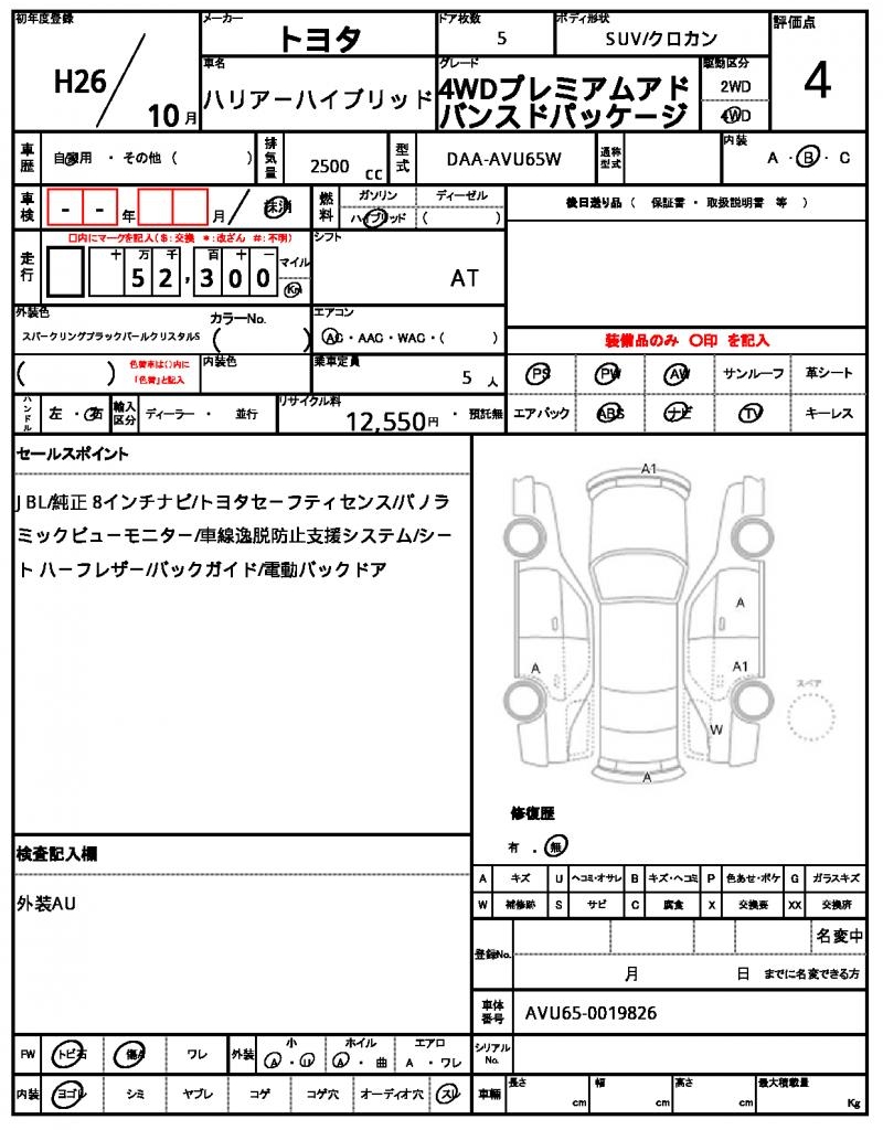2014 TOYOTA HARRIER HYBRID