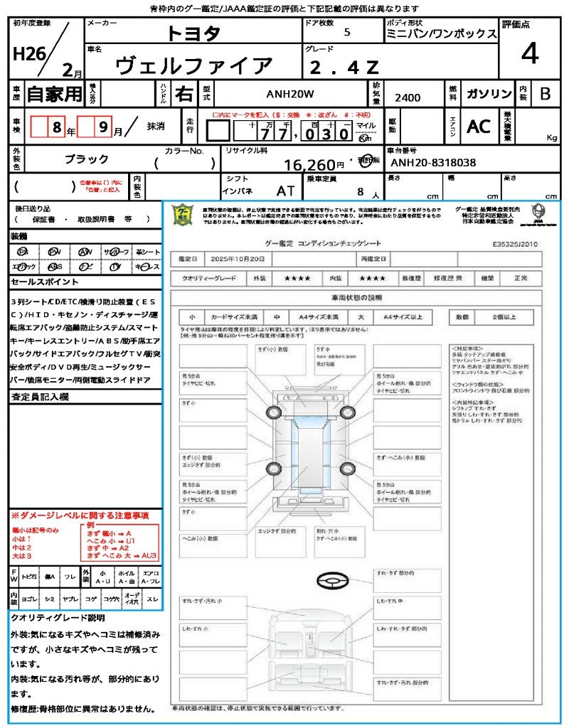 2014 TOYOTA VELLFIRE 2.4Z