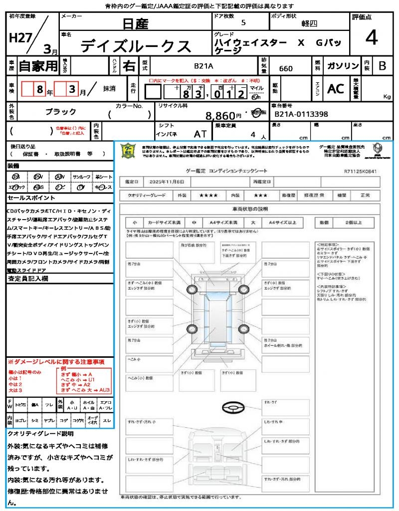 2015 NISSAN DAYZ ROOX