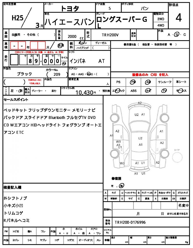 2013 TOYOTA HIACE VAN LONG SUPER GL