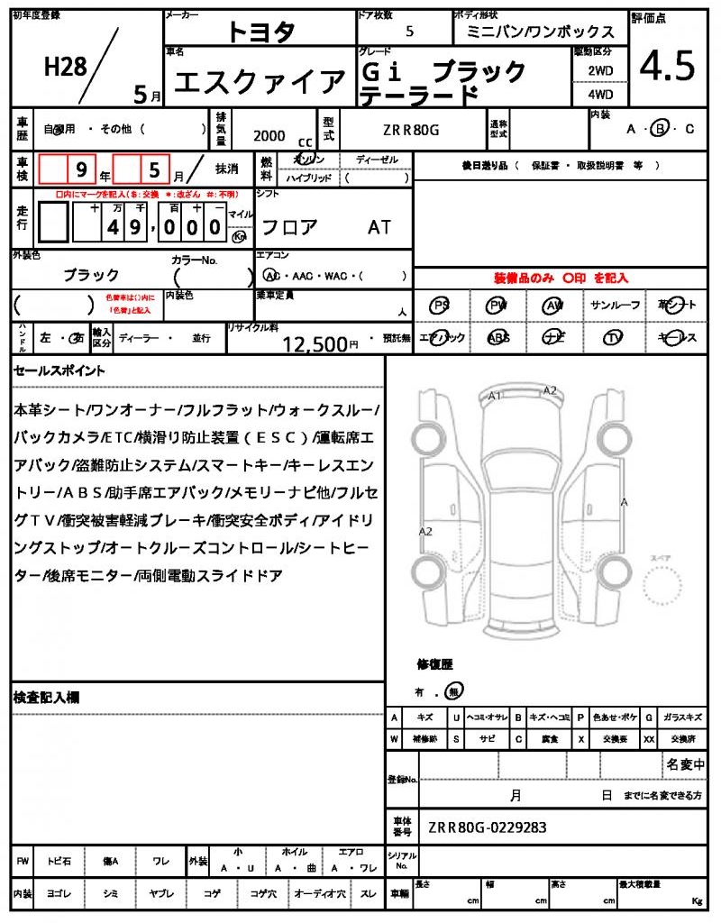 2016 TOYOTA ESQUIRE Gi BLACK TAILORED