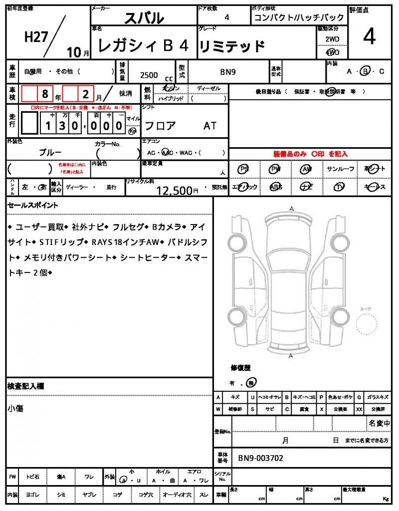 2015 SUBARU LEGACY B4