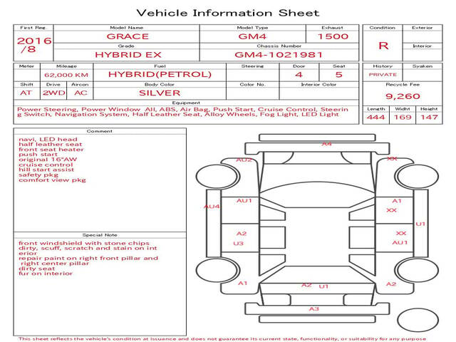2016 HONDA GRACE HYBRID EX