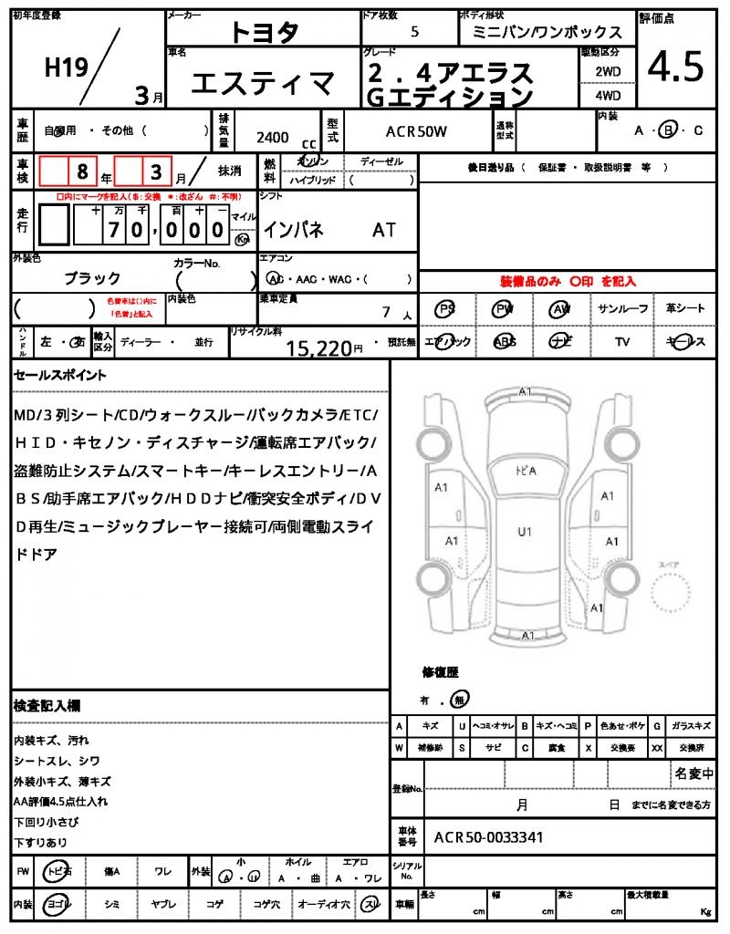 2007 TOYOTA ESTIMA ( PREVIA)