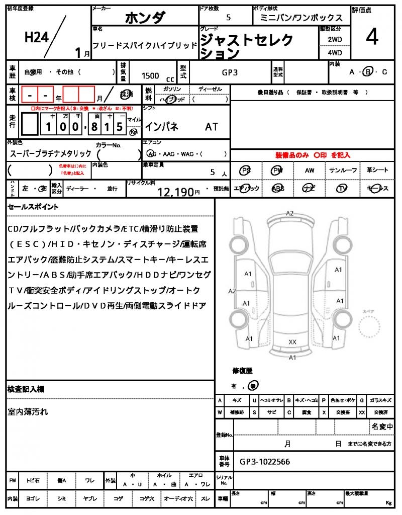 2012 HONDA FREED SPIKE HYBRID