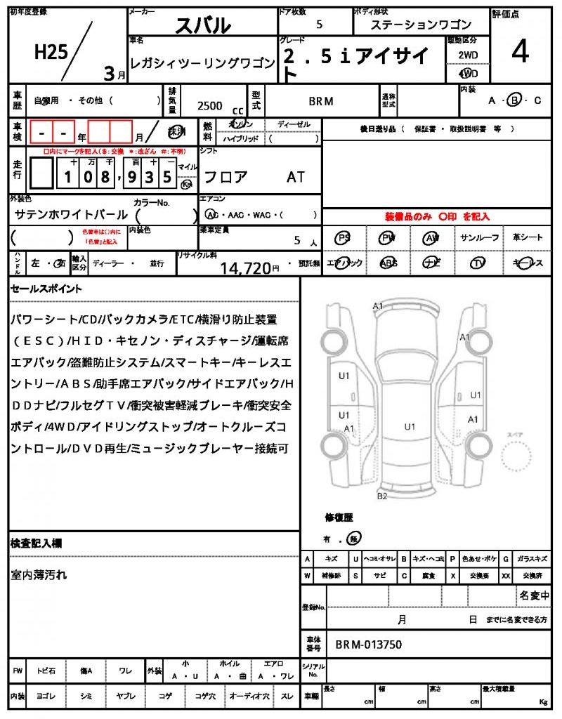 2013 SUBARU LEGACY TOURING WAGON