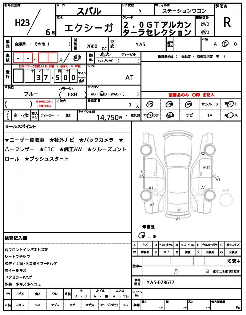 2011 SUBARU EXIGA