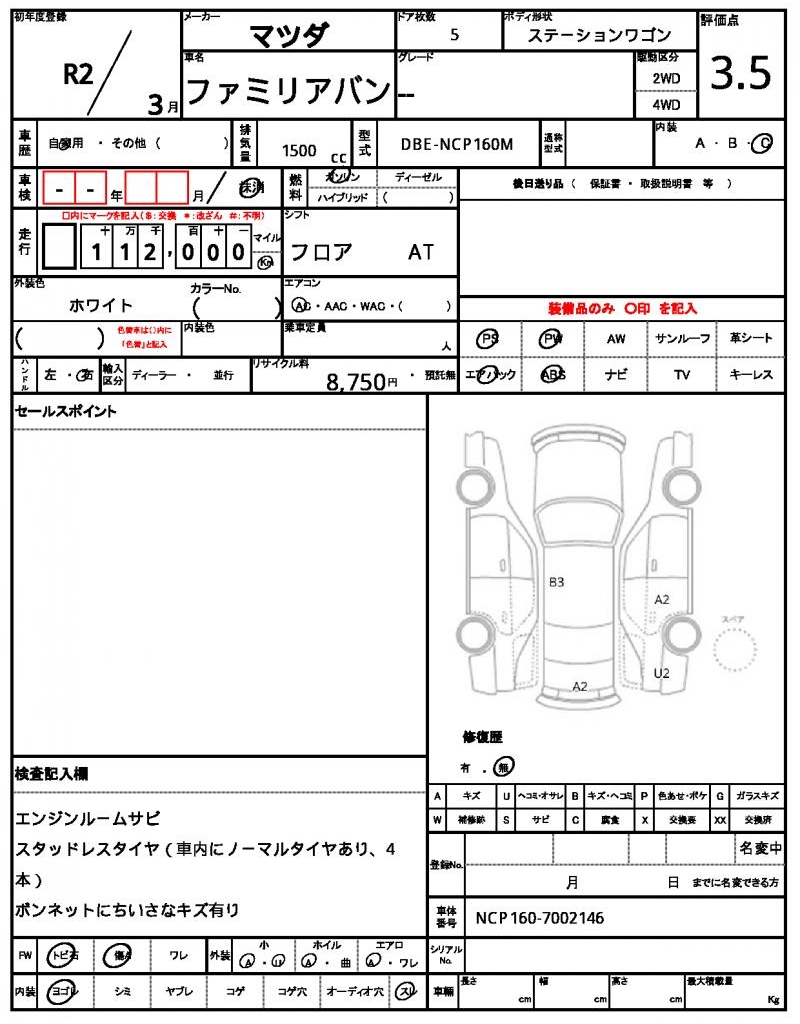 2020 MAZDA FAMILIA VAN