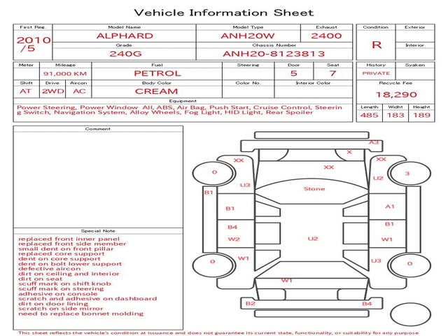 2010 TOYOTA ALPHARD 240G
