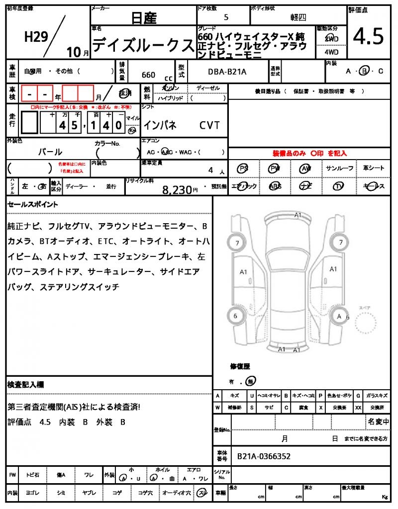 2017 NISSAN DAYZ ROOX
