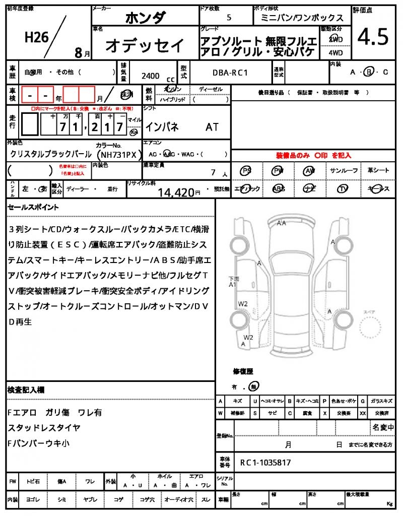 2014 HONDA ODYSSEY ABSOLUTE