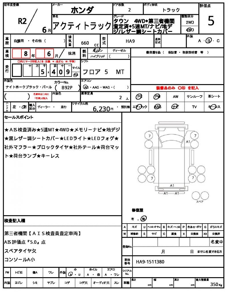2020 HONDA ACTY TRUCK