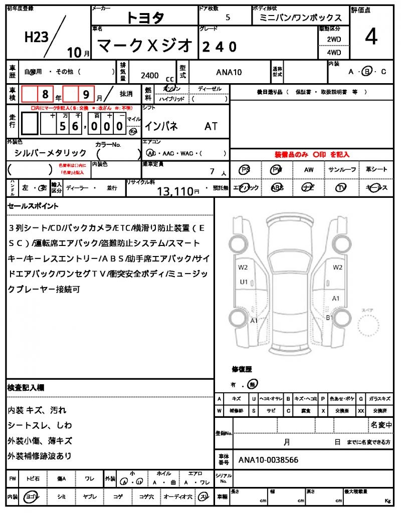 2011 TOYOTA MARK X ZIO