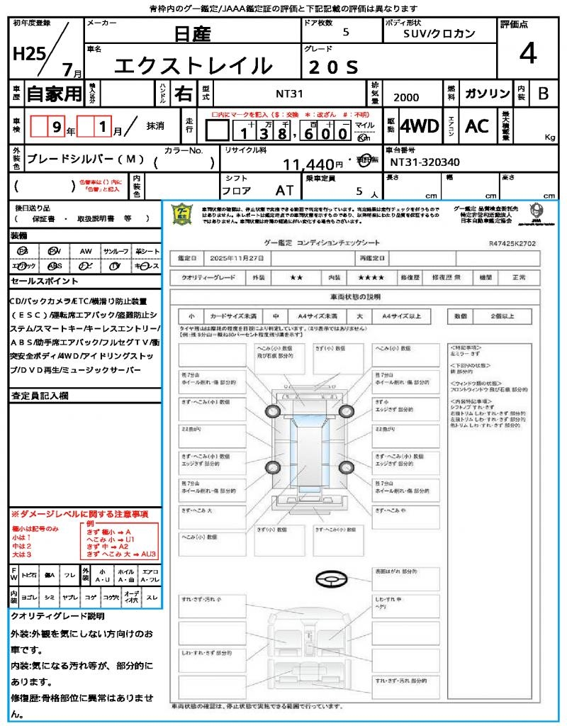 2013 NISSAN X-TRAIL 20S
