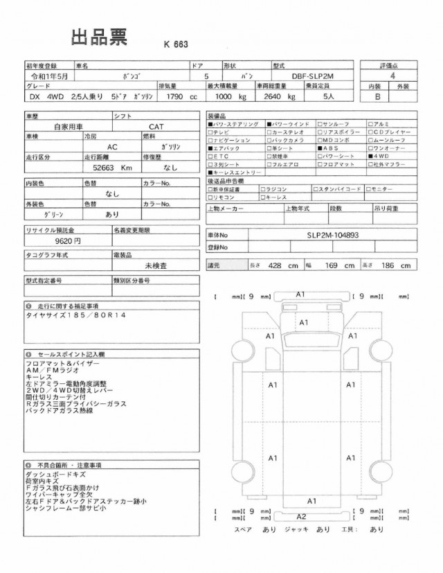 2019 MAZDA BONGO VAN