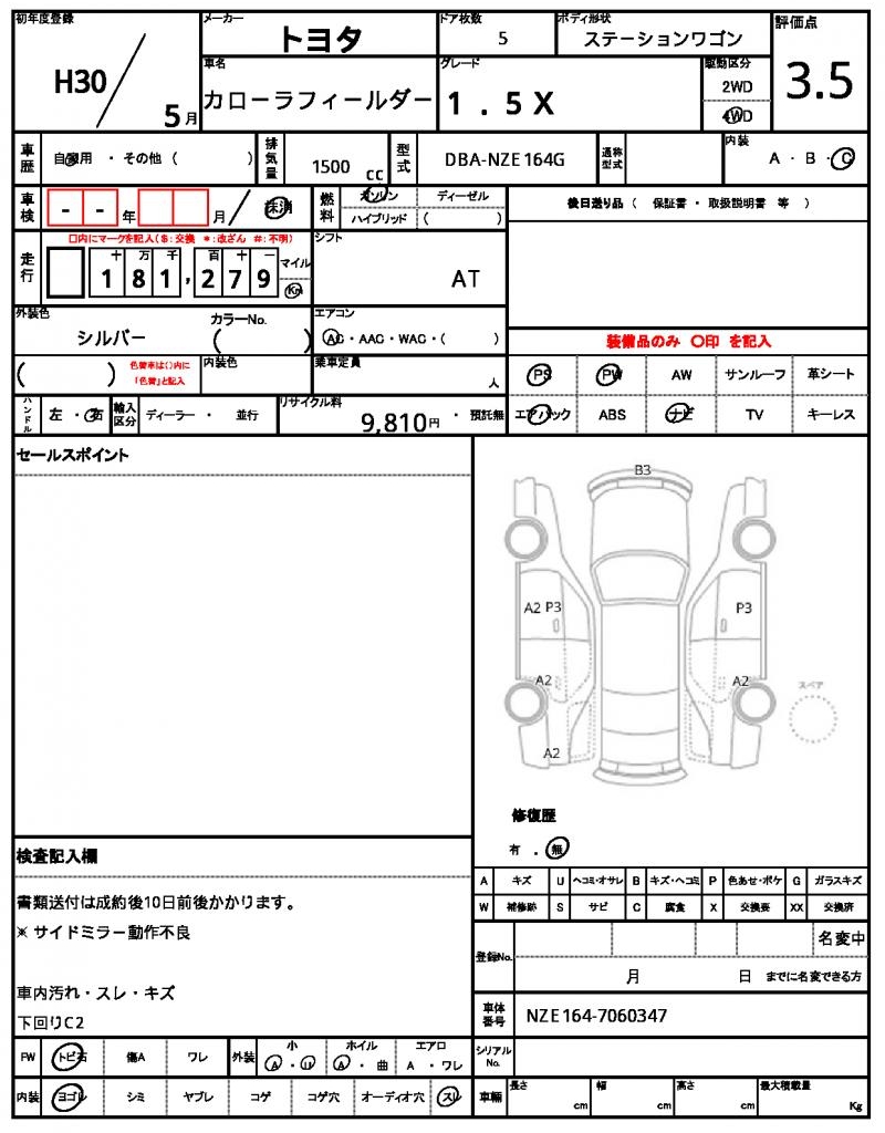 2018 TOYOTA COROLLA FIELDER 1.5X