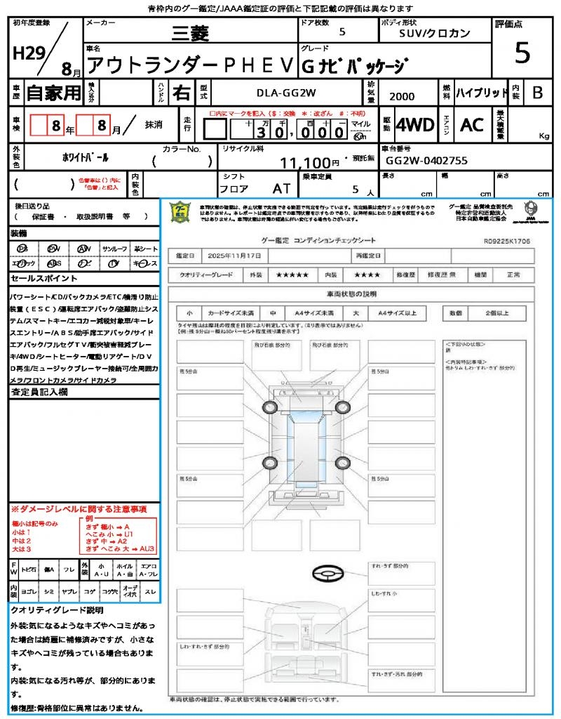 2017 MITSUBISHI OUTLANDER PHEV G NAVI PACKAGE