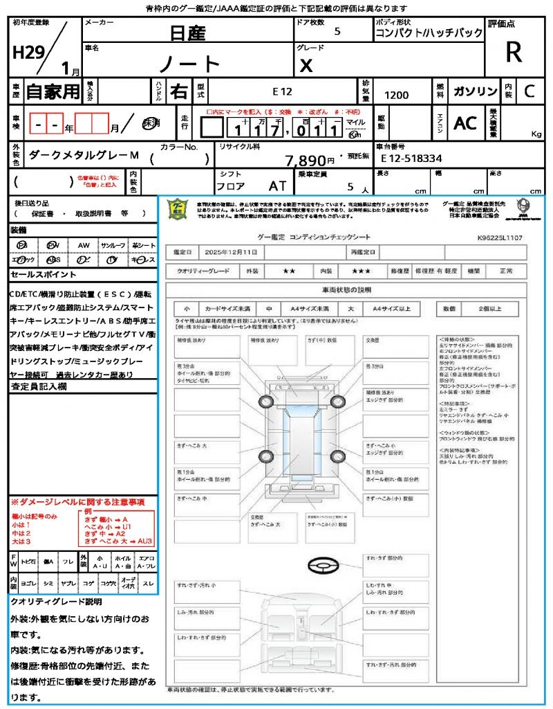 2017 NISSAN NOTE X