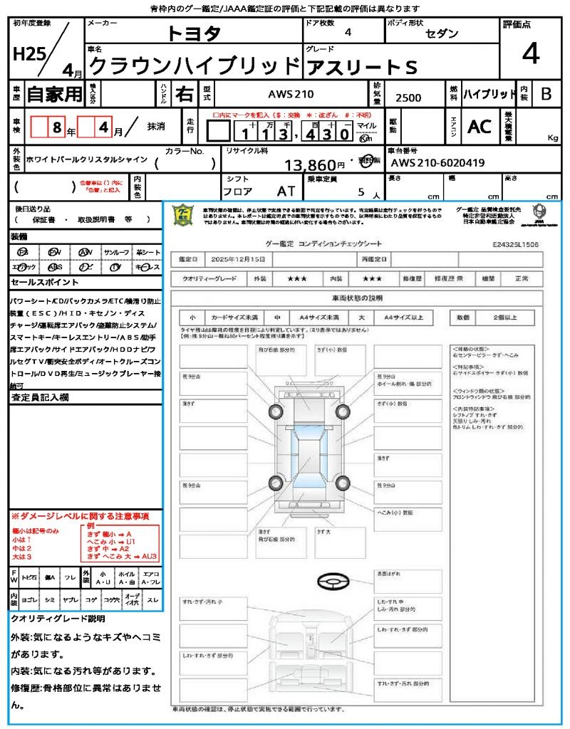 2013 TOYOTA CROWN HYBRID Athlete S