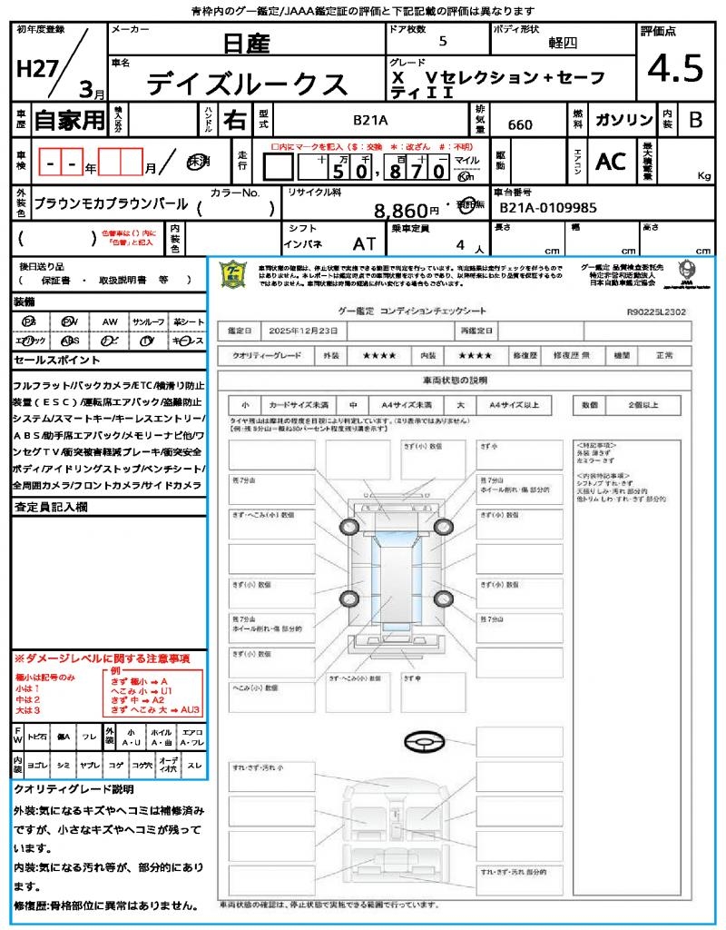 2015 NISSAN DAYZ ROOX