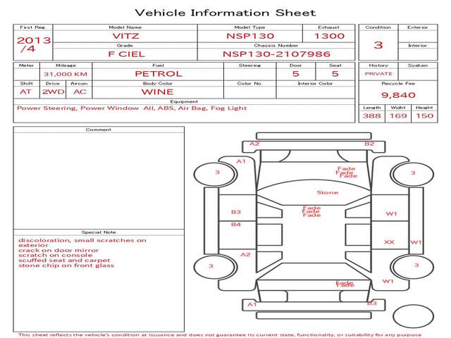 2013 TOYOTA VITZ (YARIS) F CIEL
