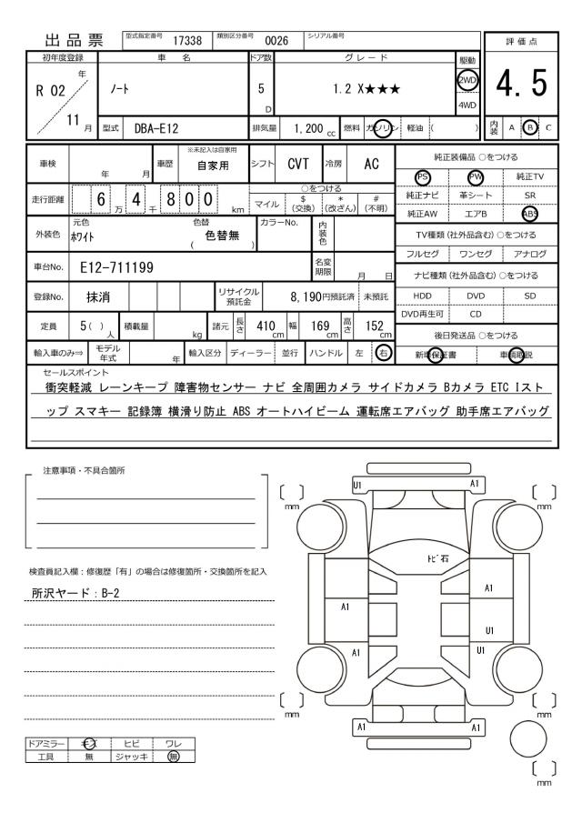 2020 NISSAN NOTE X