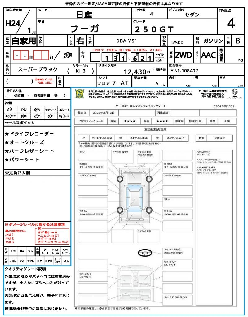 2012 NISSAN FUGA 250GT