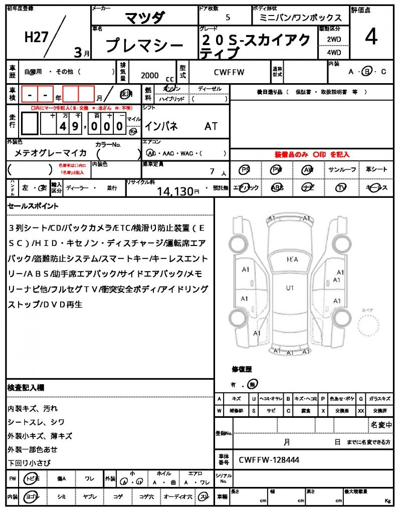 2015 MAZDA PREMACY (MAZDA5)