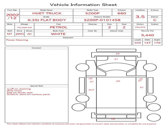 2002 DAIHATSU HIJET TRUCK 0.35 ton