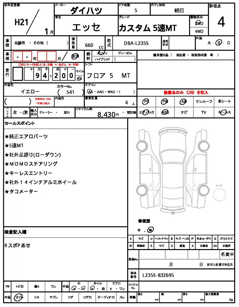 2009 DAIHATSU ESSE