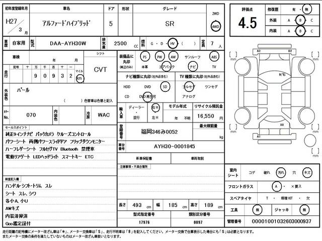 2015 TOYOTA ALPHARD HYBRID