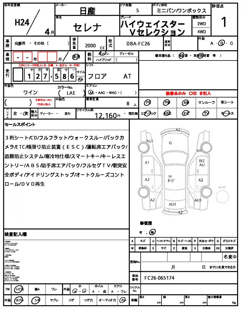 2012 NISSAN SERENA HIGHWAYSTAR V SELECTION