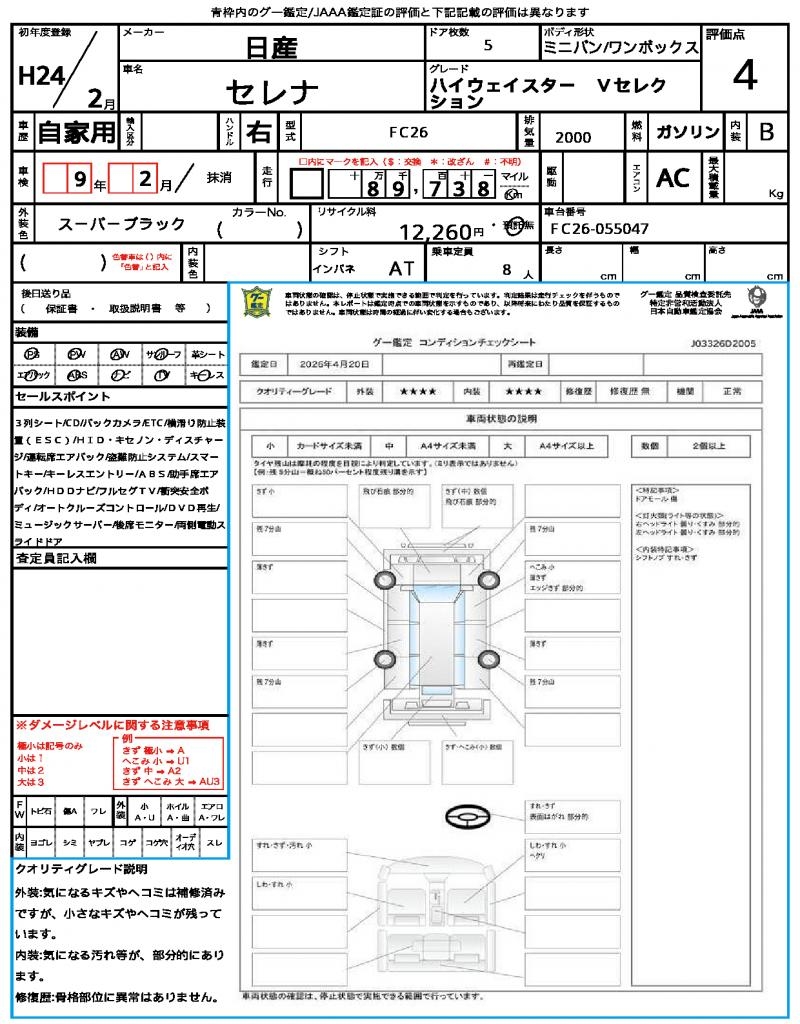 2012 NISSAN SERENA HIGHWAYSTAR V SELECTION