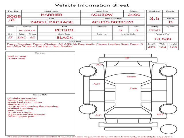 2005 TOYOTA HARRIER (LEXUS RX300) 240G L PACKAGE